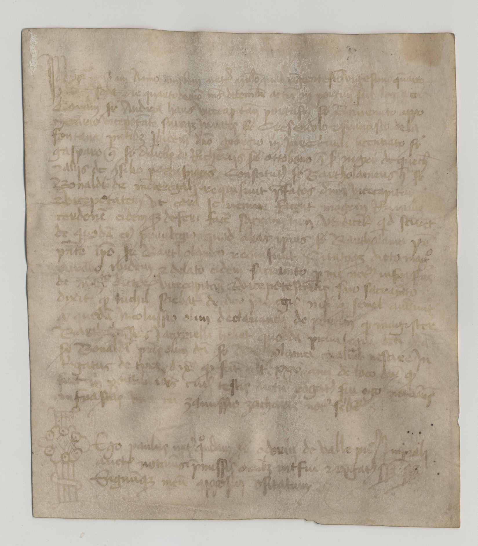 RegestoDinanzi a ser Andrea Haus vicecapitano di Pordenone e ser Benvenuto apotecario vice podestà, riuniti insieme ai giurati e altri uomini del consiglio di Pordenone, compare ser Bartolomeo del fu ser Bonaldo da Montereale, chiedendo di far comparire un certo Rura[io] calzolaio, al fine di interrogarlo in merito ad un instrumento di privilegio un tempo appartenuto al defunto ser Bonaldo