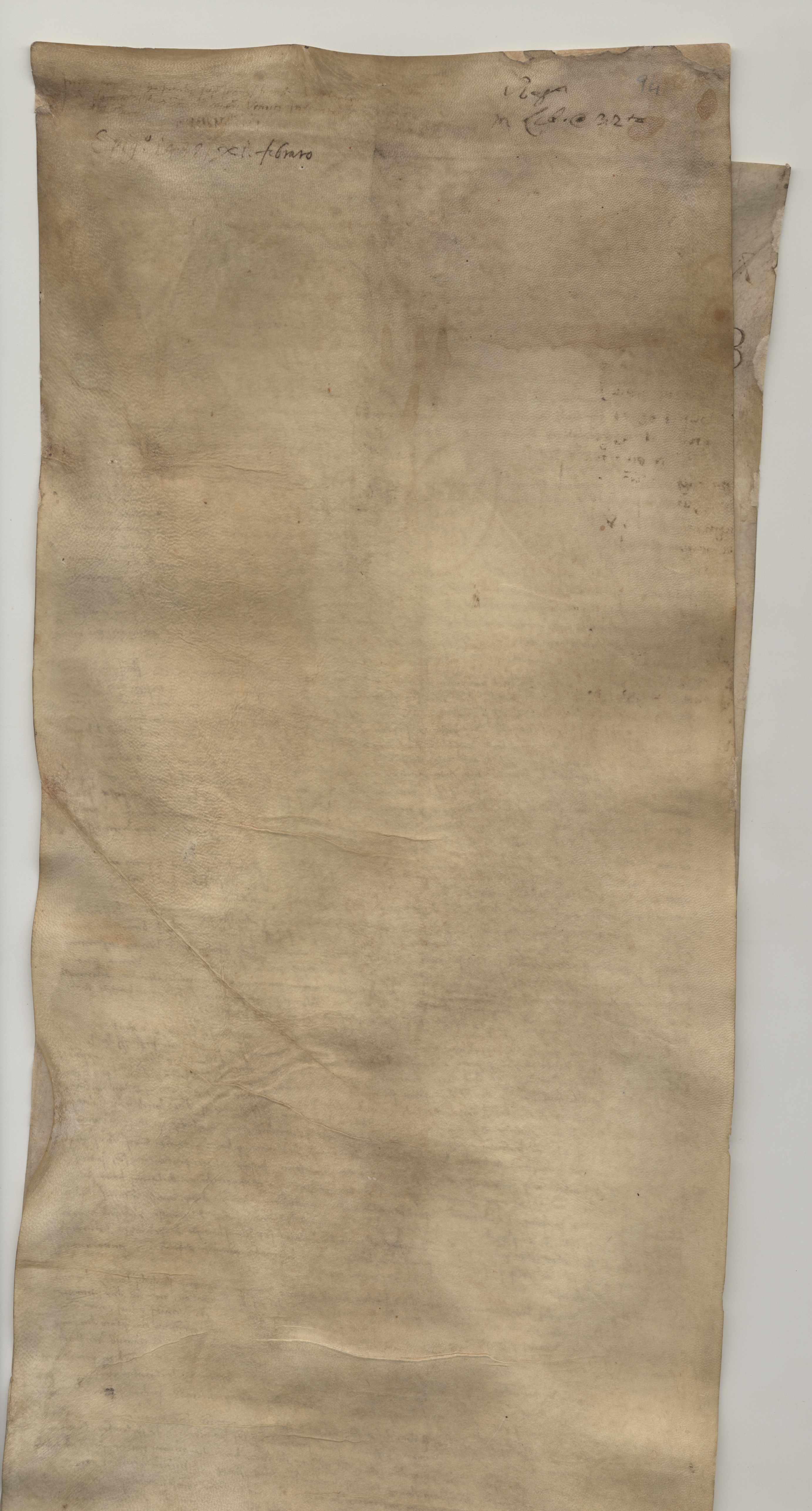 Stato conservazione e restauroDue pergamene cucite insieme, in buono stato di conservazione; presentano lievi macchie, alcune rosicature di topi ai margini, che non compromettono la lettura