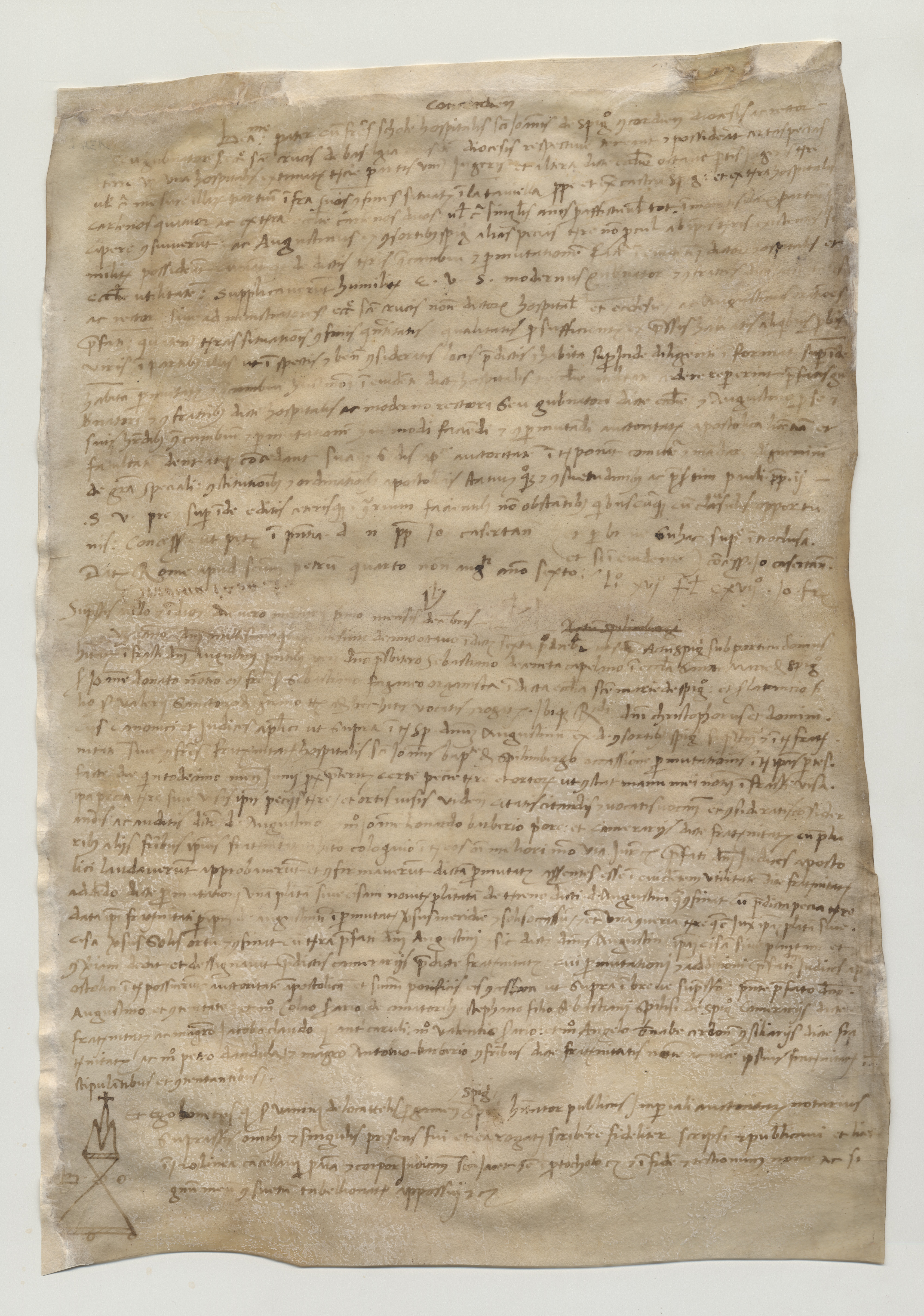 Stato conservazione e restauroDue pergamene, in discreto stato di conservazione, con grinze, macchie e inchiostro lievemente evanito