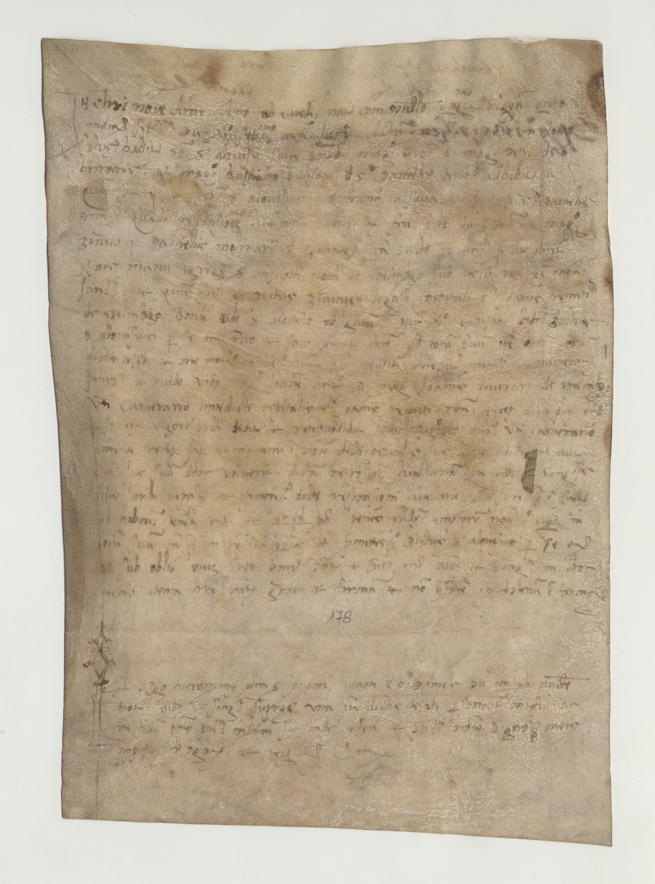 Stato conservazione e restauroPergamena in cattivo stato di conservazione, con grinze, macchie e inchiostro evanito in vari punti