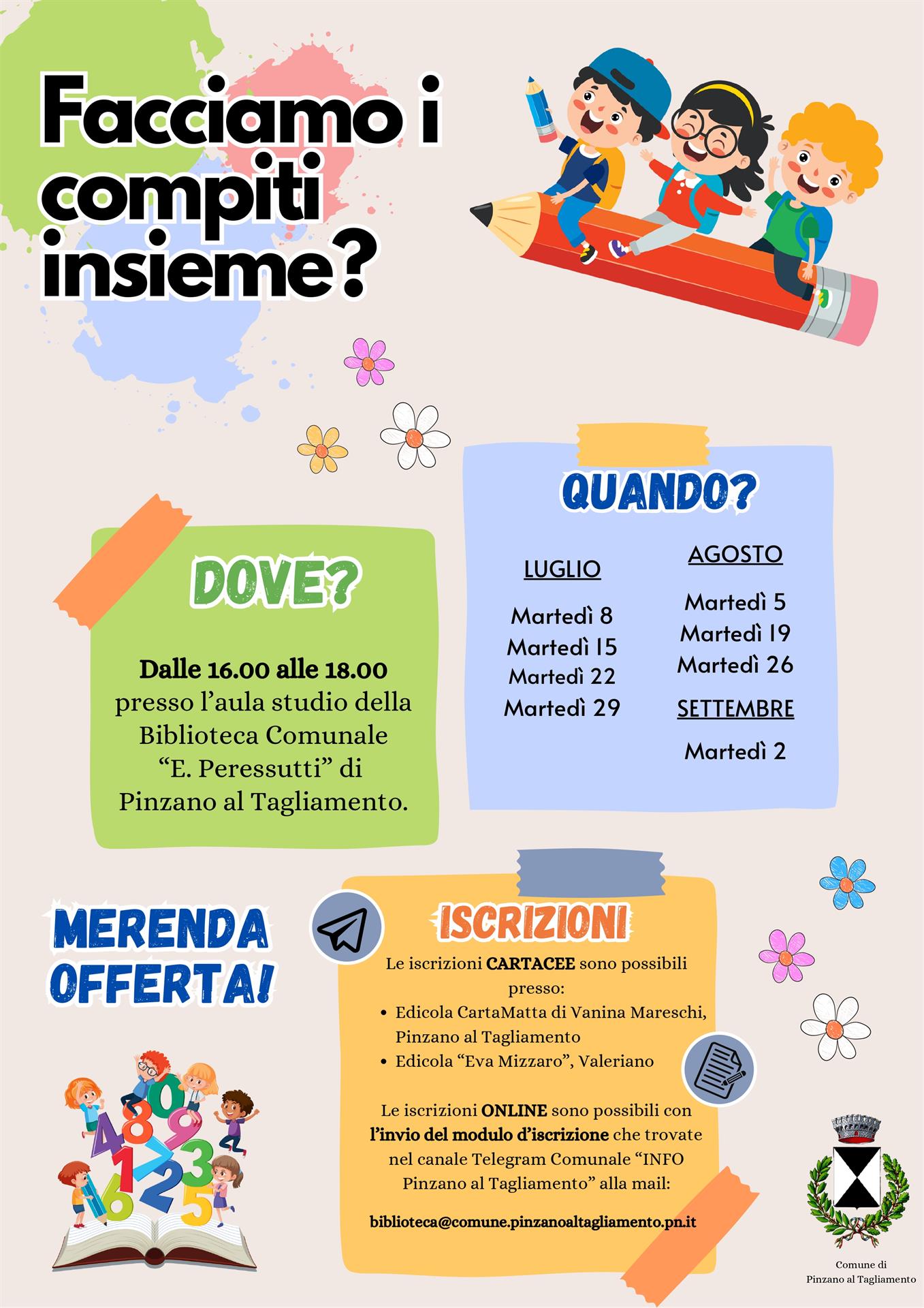 Le iscrizioni online sono possibili con l'invio del modulo d'iscrizione che trovate nel canale Telegram Comunale "INFO Pinzano al Tagliamento" alla mail: biblioteca@comune.pinzanoaltagliamento.pn.it